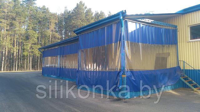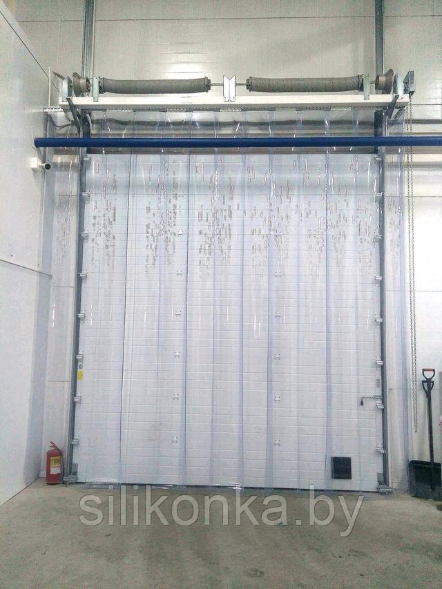 Штора ПВХ сплошная с прозрачной вставкой на складе Заказчика.